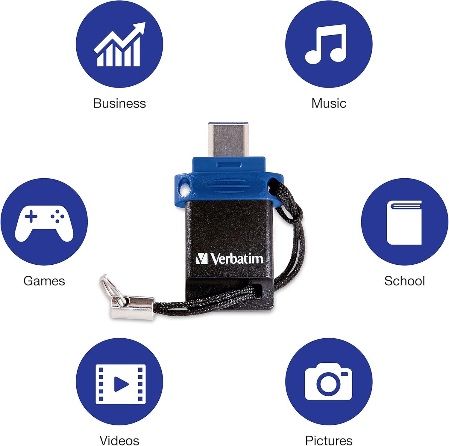 Store 'n' Go Dual USB 3.2 Gen 1 Flash Drives for USB-C Devices Verbatim's Store 'n' Go Dual USB Drive for USB-C Devices allows you to transfer files simply and quickly between USB-A and USB-C devices, such as smartphones, laptops, or other devices. Delivering dependable storage with two different USB connector types, Dual USB drives simplify file transferring between devices. Free up storage space on your mobile devices by directly saving your documents and media files to a Dual USB drive. With plug-and-play functionality, easily backup your files across multiple devices and quickly share with peers.