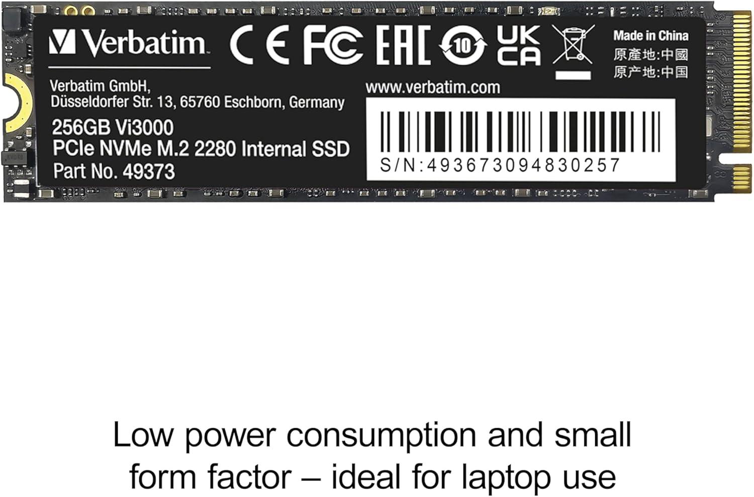 Verbatim's Vi3000 PCIe NVMe M.2 2280 Internal SSDs are designed for users who demand the ultimate in speed and performance. Thanks to the PCIe NVMe Gen 3.0 x4 interface, you can enjoy blazing fast data transfer speeds, up to 6x faster than SATA-based SSDs. Transfer multiple or large files with ease with read speeds up to 3100MB/s and write speeds up to 2100MB/s. (Sequential transfer speeds based on internal testing using ATTO benchmark. Actual performance may vary depending on host computer environment, and use conditions.) The small M.2 2280 form factor saves space without sacrificing performance, even with limited chassis or motherboard space. Transform the performance of your desktop or laptop and enjoy decreased system boot time, more efficient multi-tasking, and faster system responsiveness. Verbatim's Vi3000 PCIe NVMe M.2 2280 Internal SSDs are backed by a 2-year limited warranty.