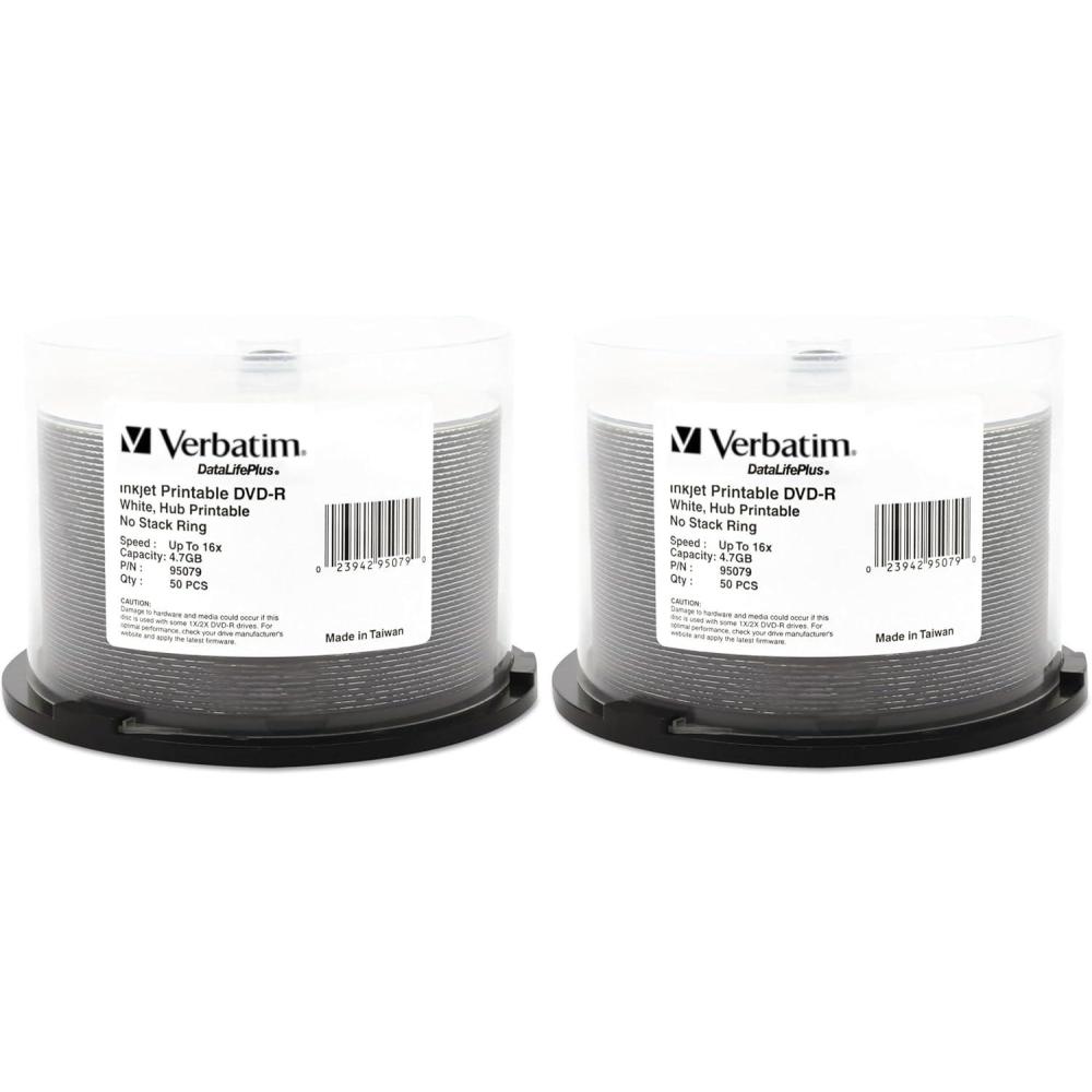 imageVerbatim DVDR Blank Discs 47GB 16X DataLifePlus White Inkjet Printable Recordable Disc Hub Printable  100pk Tape Wrap 97016White Inkjet Hub
