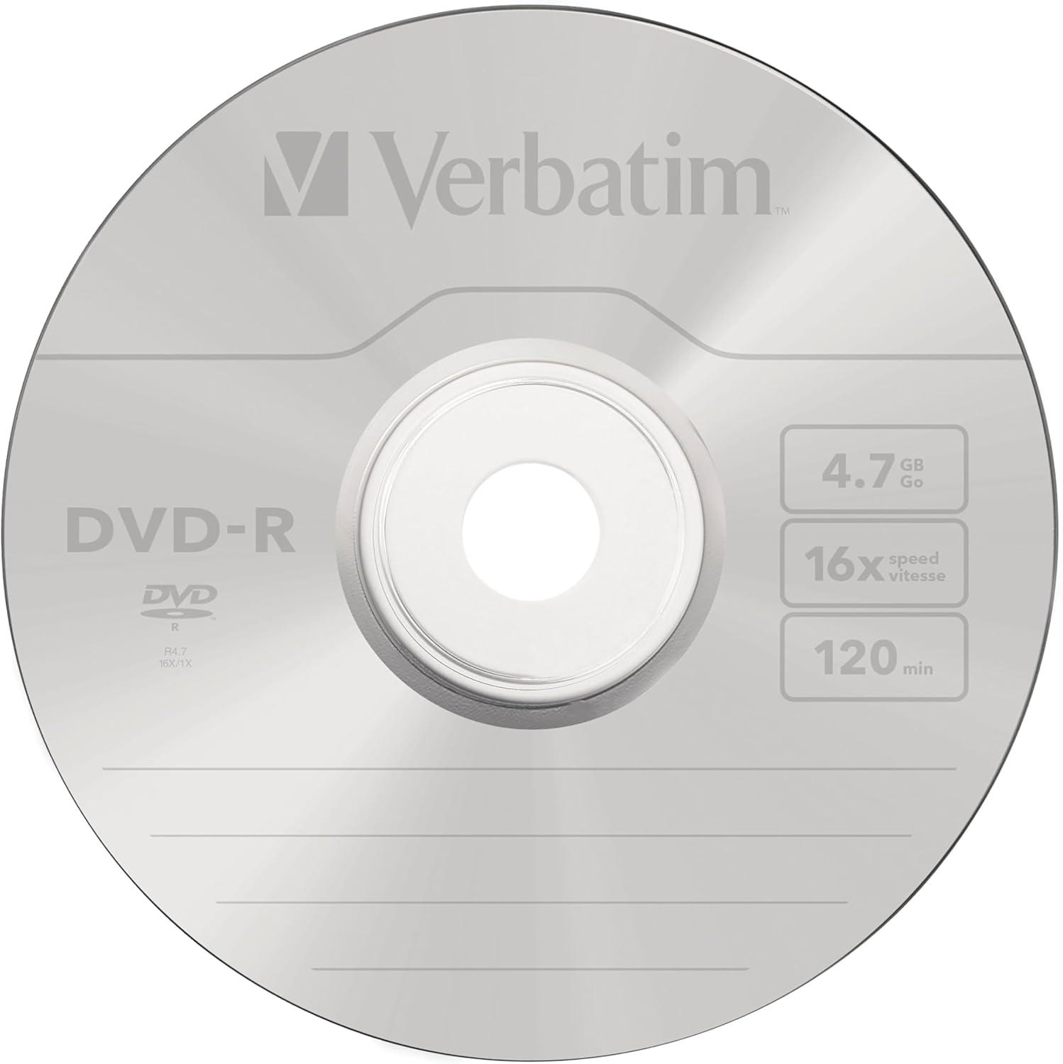 Verbatim DVD-R Blank Discs AZO Dye 4.7GB 16X Recordable Disc - 100 Pack Spindle,Silver(10 Pack Wrap)