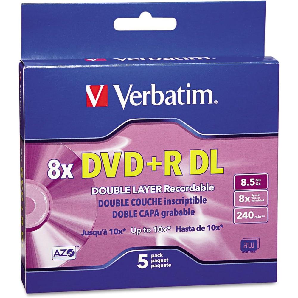 Preferred by DVD drive manufacturers, Verbatim DVD media continues to set the standard for high-speed disc performance, reliability, and compatibility.  DVD+R Double Layer nearly doubles the storage capacity with two AZO recording layers on a single-sided disc.  Certified and supported by the industry high speed Double Layer writers, Verbatim discs are approved for high speed burning up to 10X speeds.  Store up to 8.5GBs of video in approximately 12-15 minutes or less while maintaining compatibility with most DVD video players or DVD-ROM drives.  All backed by Verbatim’s limited lifetime warranty