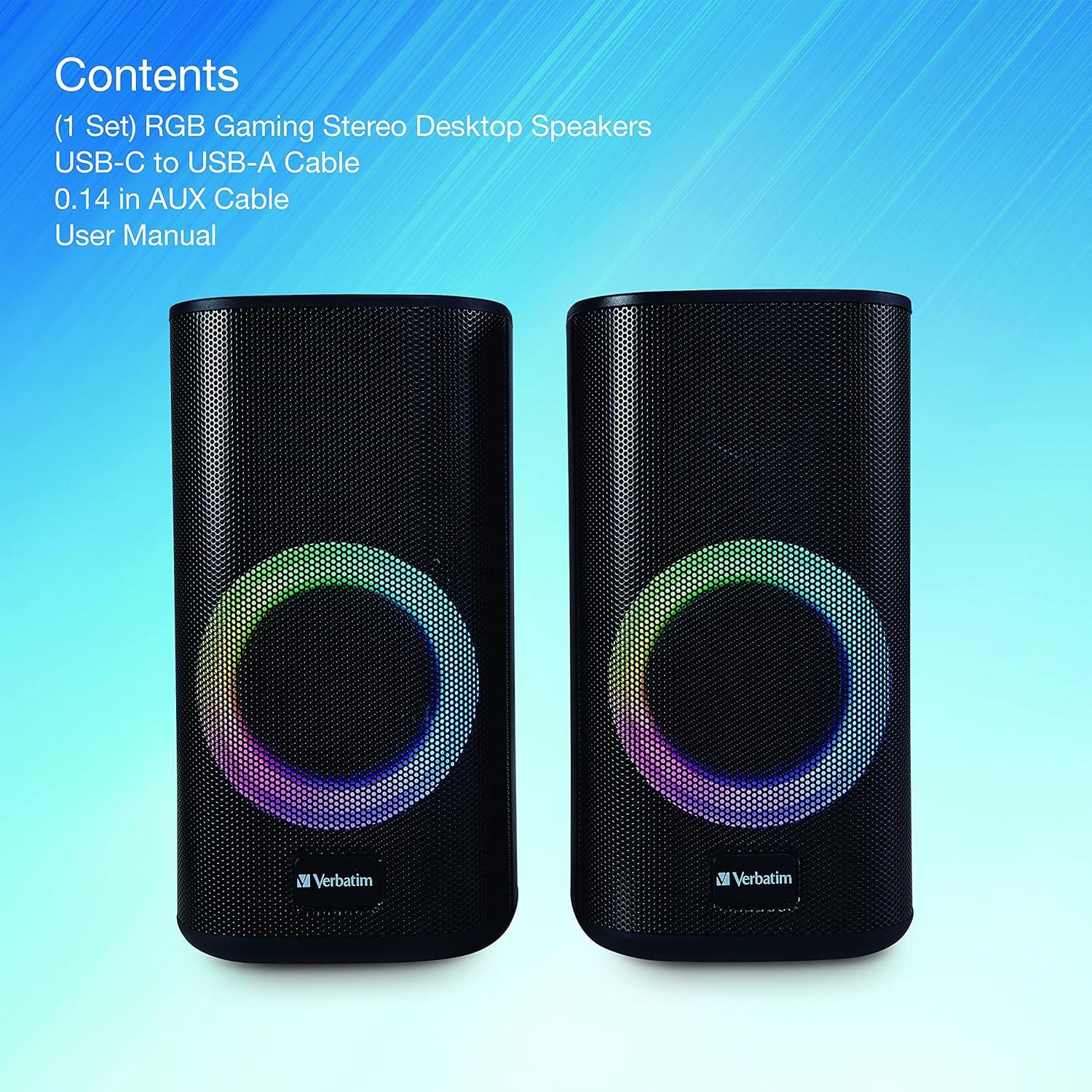 Verbatim RGB Gaming Stereo Desktop Speakers Bluetooth 5.0 3.5mm AUX-in Connection – Black