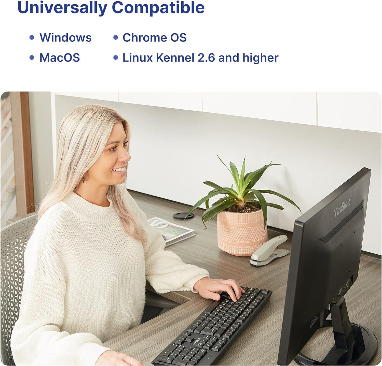 Simple, plug and play USB 2.0 corded connection; Compatible with Windows, MacOS, Chrome OS, Linux Kernel 2.6 and higher