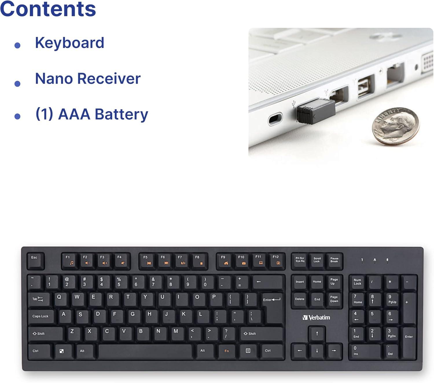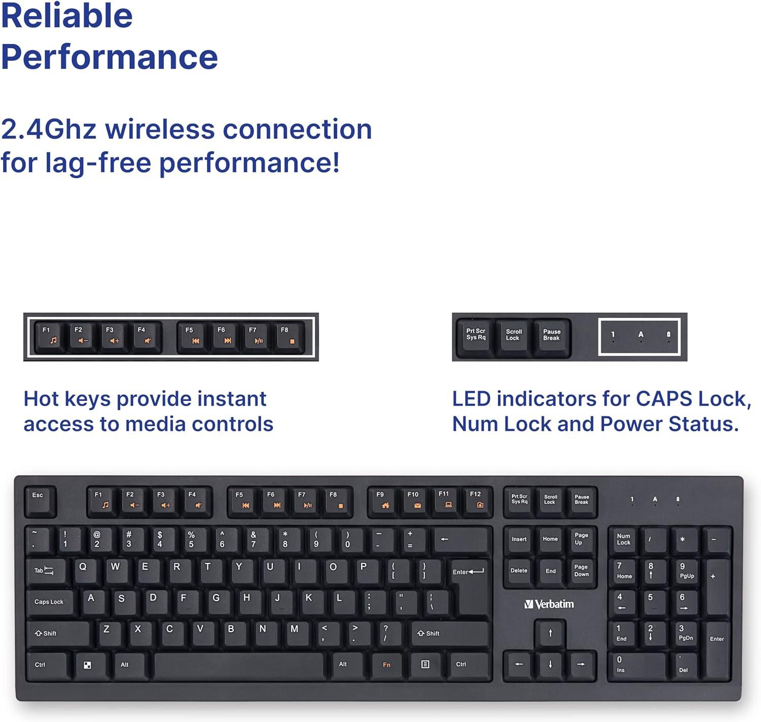 Verbatim Slimline Wired Keyboard and Mouse Combo USB Plug-and-Play Numeric Keypad Adjustable Tilt Legs Optical Corded Mouse Full-Size Computer Keyboard Compatible with PC, Laptop - FFP Packaging Black(Wireless Keyboard)