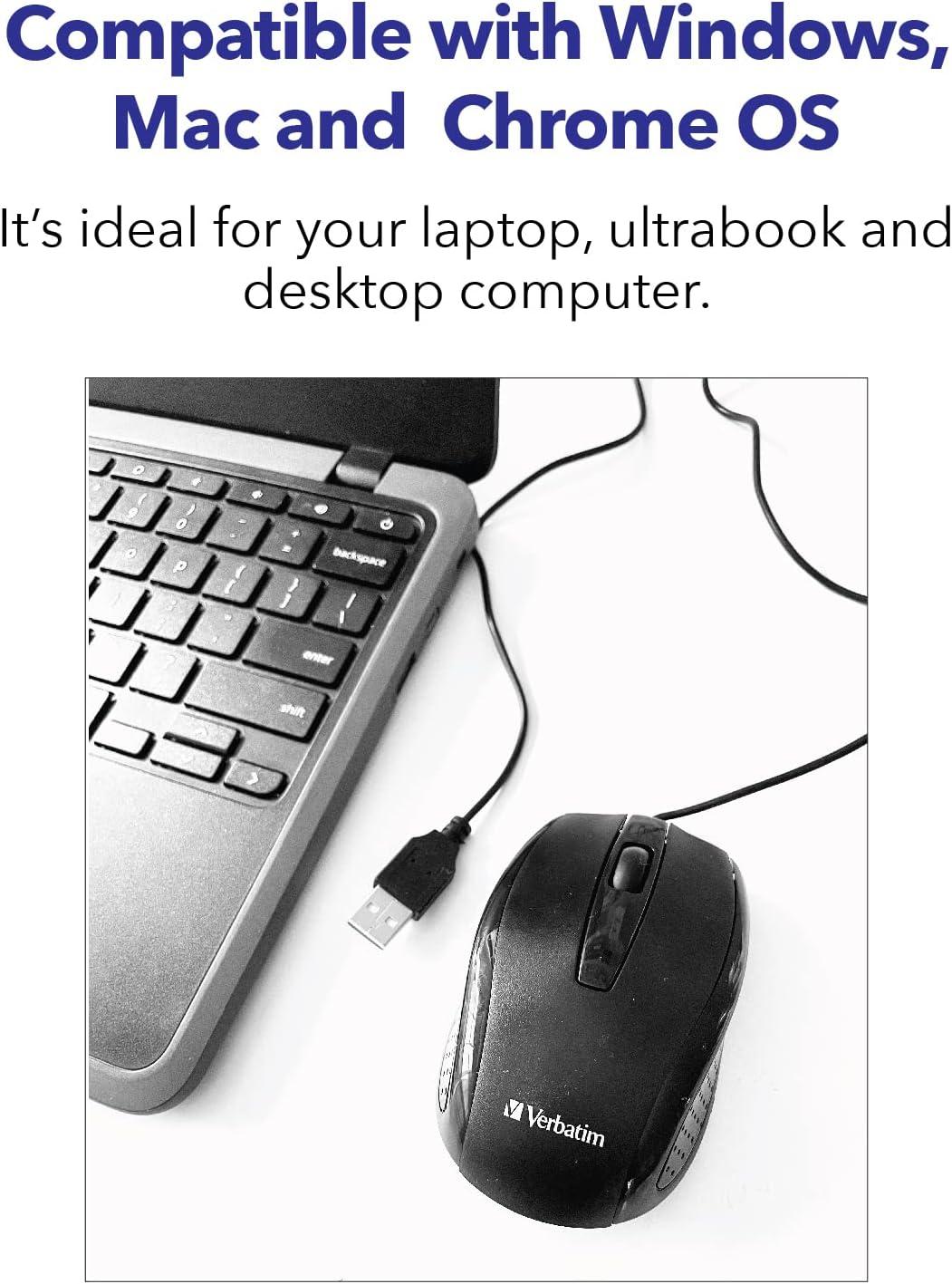 Verbatim Wired USB Computer Mouse – Corded USB Mouse for Laptops and PCs – Right or Left Hand Use, White 99740, 1.4″ x 2.4″ x 3.9″(White)