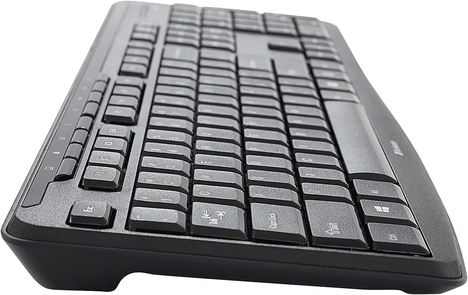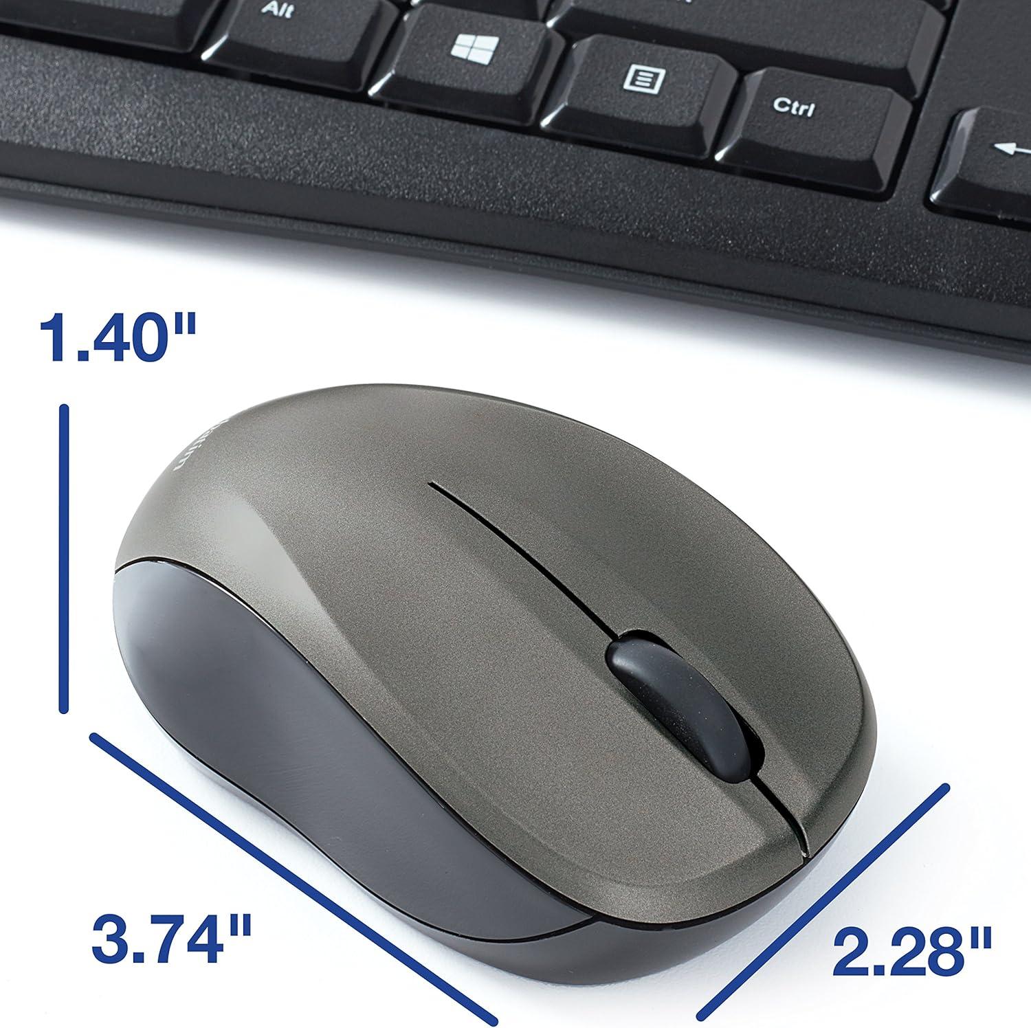 Say goodbye to noise and hello to silence with the Verbatim Silent Mouse and Keyboard. Using new Silent Technology, silent click switches, and rubber covers, these Verbatim products are truly silent. The nano receiver is small enough to plug in and leave connected and the 2.4GHz wireless performance allows for a lag-free connection. The Silent Mouse features Blue LED technology, allowing users to point and click on more surfaces than other mice – from a glass table to the granite kitchen counter! The Silent Keyboard features a full numeric keypad and full-size function keys, all within a slim, efficient design. Contents: Keyboard, Mouse, Nano receiver, 4 x AAA batteries Package Includes: Keyboard, Mouse, Nano receiver, 4 x AAA batteries